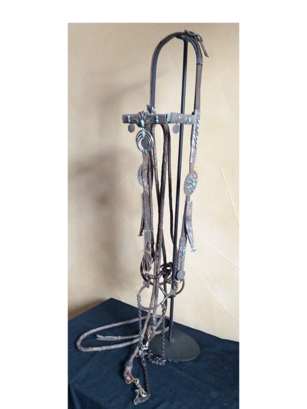 .Navajo Bridle with traditional ring bit. Strong sliver and turquoise work. Naja medallion, a bridle such as this one would evoke esteem and pride for its owner for possessing such a valuable item.